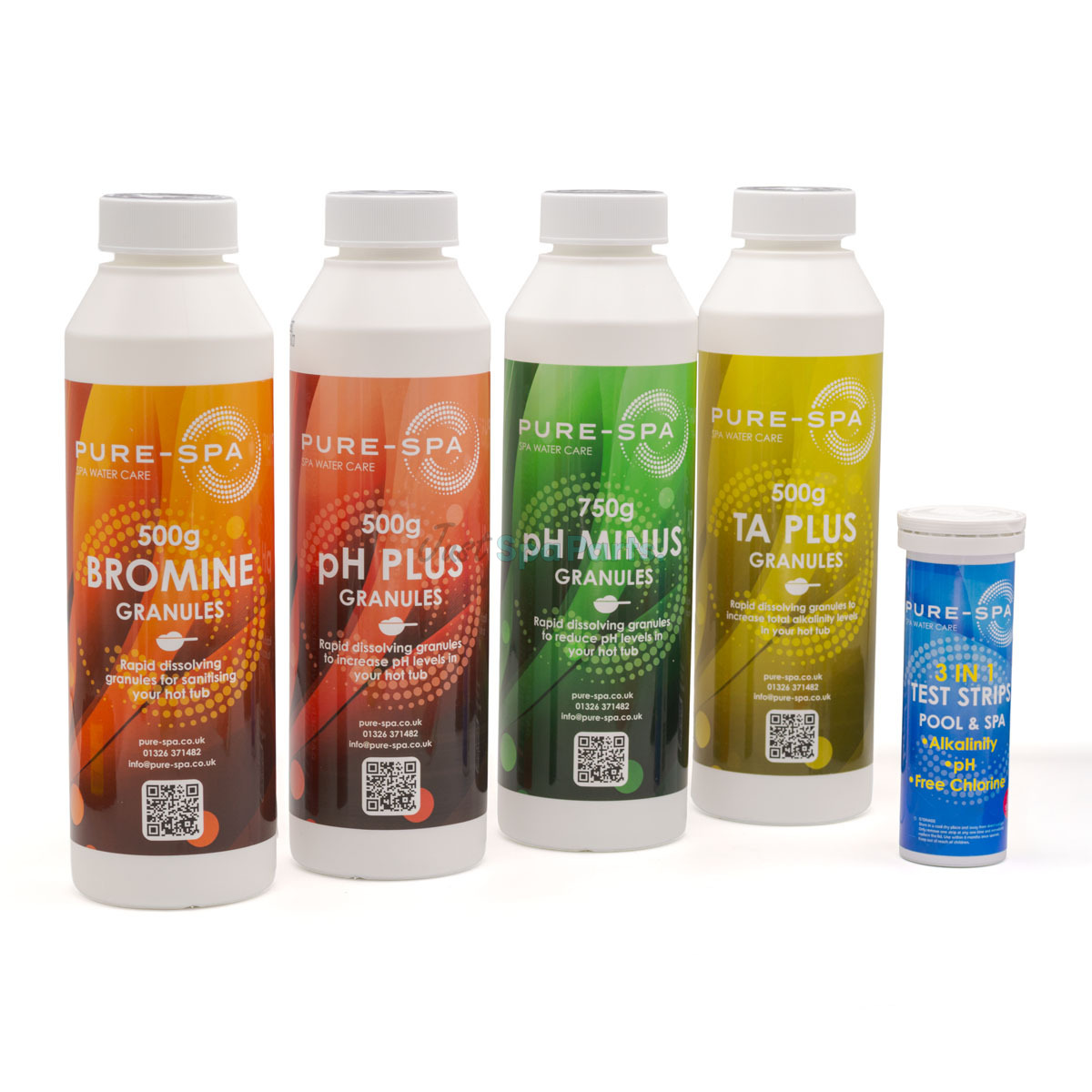 This version of the kit focuses on water stability. Alongside a dependable sanitiser and pH control, it includes Total Alkalinity (TA) Increaser to lock in balance and reduce pH drift. Ideal for dealers in both hard- and soft-water regions, and a reliable way for retail buyers to try the Pure-Spa range without committing to bulk sizes.