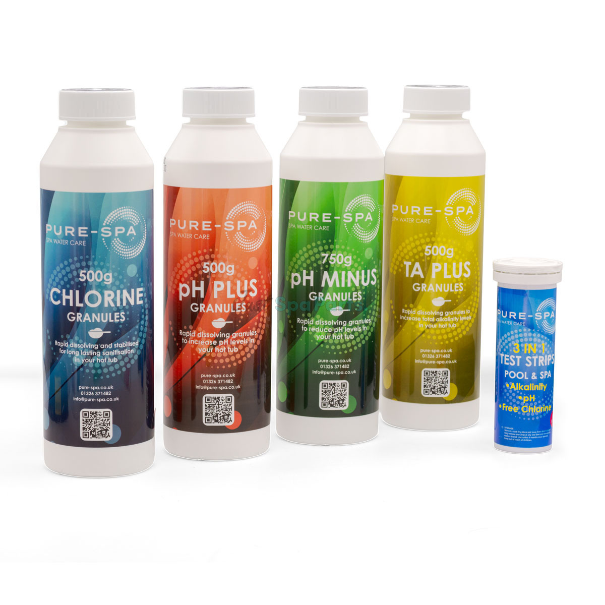 More info (if needed): Suitable for all spas and hot tubs when used as directed. Designed for new hot tub start-ups, showroom handovers, and trade service packs. Compatible with all common spa systems. Part of the Pure-Spa water care range.